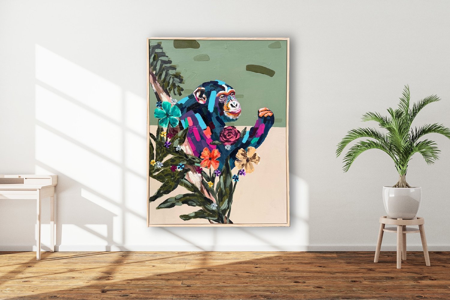 This painting is framed.